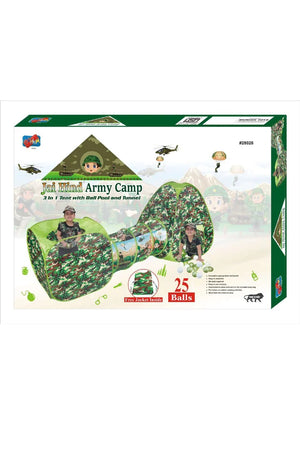 Balak Army Camp Jai Hind 3 in 1 Tunnel With Ball Pool And Tent With 25 Balls And Military Jacket