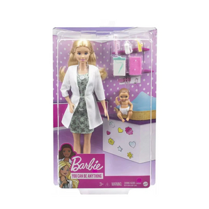 Explore A World Of Caretaking Fun With The Barbie® Baby Doctor Playset! When A Girl Plays With Barbie®, She Imagines Everything She Can Become, And If You Love Taking Care Of Babies, You Can Be A Baby Doctor! Playset Includes The Barbie® Baby Doctor Doll (12-In/30.40-Cm) Who Wears A Sweet Dress With A Butterfly Pattern And A White DoctorS Coat, And Her Cute Infant Patient Who Sports A Diaper. Playset Also Comes With 6 Accessories (Some Of Which Barbie® Baby Doctor Doll Can Hold): A Stethoscope, Thermometer, Oscilloscope, Chart And A Pink Baby Blanket And Baby Bottle To Keep Her Patient Happy And Healthy. Kids Will Love The Endless Possibilities For Creative Expression And Storytelling Fun! Doll Cannot Stand Alone. Colors And Decorations May Vary. Makes A Great Gift For Ages 3 Years Old And Up. ? Features: ?Explore A World Of Taking Care Of Babies With The Barbie® Baby Doctor Playset! ?Wearing A Sweet Dress With A Butterfly Pattern And A White DoctorS Coat, Barbie® Baby Doctor Doll (12-In/30.40-Cm) Is Ready To Take Care Of Her Adorable Infant Patient Who Sports A Diaper And Has A Pink Baby Blanket. ?Barbie® Baby Doctor Doll Can Examine Her Infant Patient With A Stethoscope, Use The Thermometer, Check Her With The Oscilloscope, Make Notes In The Chart, And Feed The Baby With The Bottle To Keep Her Happy And Healthy. ?Kids Will Love The Creative Play And Storytelling Fun With The Barbie® Baby Doctor Playset! ?Makes A Great Gift For Kids 3 Years Old And Up, Especially Those Interested In The Medical Field And Taking Care Of Babies! Legal Line: ?Barbie And Associated Trademarks And Trade Dress Are Owned By Mattel. ©2020 Mattel.? Licensed Legal 1: Licensed Legal 2:;Explore A World Of Taking Care Of Babies With The Barbie Baby Doctor Playset!;Wearing A Sweet Dress With A Butterfly Pattern And A White DoctorS Coat, Barbie Baby Doctor Doll (12-In/30.40-Cm) Is Ready To Take Care Of Her Adorable Infant Patient Who Sports A Diaper And Has A Pink Baby Blanket.;Barbie Baby Doctor Doll Can Examine Her Infant Patient With A Stethoscope, Use The Thermometer, Check Her With The Oscilloscope, Make Notes In The Chart, And Feed The Baby With The Bottle To Keep Her Happy And Healthy.;Kids Will Love The Creative Play And Storytelling Fun With The Barbie Baby Doctor Playset!;Makes A Great Gift For Kids 3 Years Old And Up, Especially Those Interested In The Medical Field And Taking Care Of Babies!;;