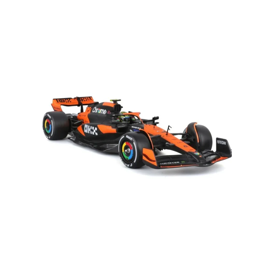 Bburago 1/24 Scale McLaren MCL38 - Lando Norris #4 Diecast F1 Model with Helmet (Plex Case)