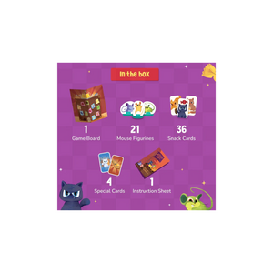 - IN THE BOX - 1 Game board, 21 Mouse figurines, 40 Cards, 1 Instruction sheet. Durable and safe – made with safe, high-quality, non-toxic materials keeping children in mind.