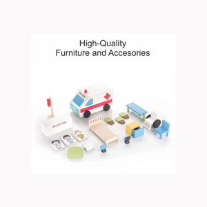- ENTERTAINING AND EDUCATIONAL TOY - This interactive wooden hospital toy offers both entertainment and educational value. Its open front design allows easy access to all areas of the hospital, making it convenient to play with furniture and characters. The design also accommodates multiple children playing together simultaneously.