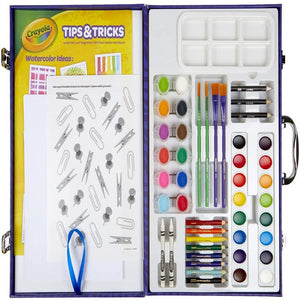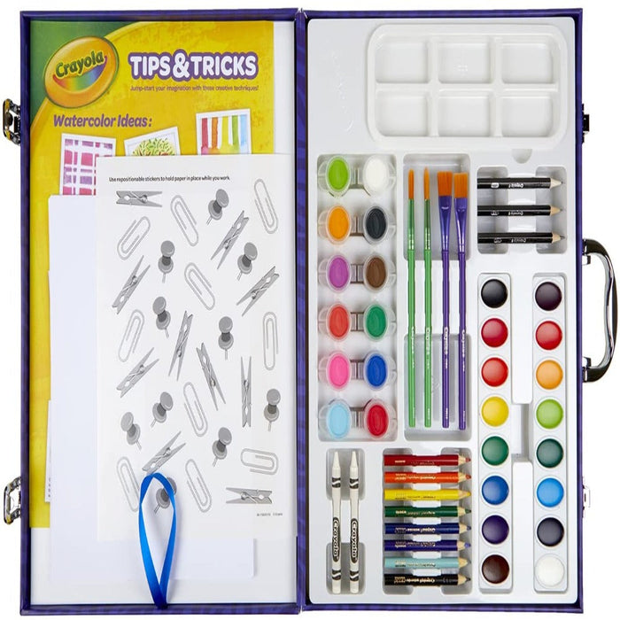 The Crayola Easel Art Case has all kids need to paint and create the easy way, with a built-in easel! The dual-sided tabletop easel even allows two artists to work at once! The set includes a durable and portable travel art case that makes it easier than ever to keep painting supplies protected & organized while on-the-go! Try out new painting techniques with included tools like Crayola Resist Crayons or Sketch Pencils. The complete set features 12 Washable Paint Pots, 16 Watercolor Paints, 8 Short Watercolor Pencils, 3 Sketch Pencils, 2 White Crayons, 4 Paint Brushes, 2 Mixing Trays, 18 Pages Watercolor Paper, 1 Sheet of Repositionable Stickers, and 1 Storage Case. Makes a creative holiday or birthday gift for girls and boys. As with all Crayola products the contents are safe and nontoxic. Ideal for ages 4 & up.