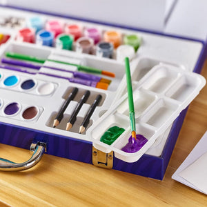 PORTABLE ART SET: With a durable travel art case, it's easier than ever to keep painting supplies protected & organized while on-the-go!