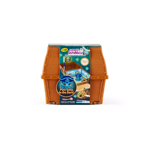 - SCRIBBLE SCRUBBIE PETS: Features 1 Chest Habitat, 2 Glow in the Dark Ocean Animal Figurines, 1 Glow in the Dark Flag, 3 Washable Markers, and 1 Scrub Brush.