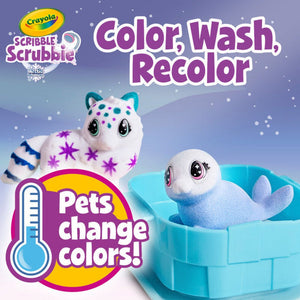 The Crayola Scribble Scrubbies Arctic Pets Igloo lets kids chill out with new color-changing friends! This arctic-themed playset encourages kids to dream up icy adventures and create colorful designs for their Scribble Scrubbies Pets! Then watch as cute little pets change colors as temperatures dip below 55F. Place pets in the freezer for a minute or two and watch the transformation! Kids can create custom colorful patterns on their pets with washable markers, then wash pets clean to create new patterns again and again. Set includes 1 plastic Igloo doubling as a storage case with foldable handles, 2 new color change pets, 3 markers, 1 brush, and 1 plastic tub. Safe and nontoxic. Makes an ideal gift for kids ages 3 and up. Works great with Crayola Ultra-Clean Markers too!