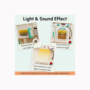 - Real Cooking Experience: This kitchen set for kids girl includes a realistic running water kitchen sink for lifelike play, a spacious storage unit for organizing utensils & a functional oven with opening doors & turning knobs. The set also features a stovetop, a microwave, colorful food accessories, and a variety of cooking utensils for an immersive cooking experience. It comes with electronic features like light & sound effectsβrotate the knobs to turn on the lights, press the button to activate them, and switch on the exhaust fan with a simple press, making playtime even more exciting.