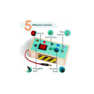 3 Interactive Features: This busy board toy comes with funfeatures that keep kids engaged. It has buttons to press, rotating knobs, flickswitches, and plug-in wires, making playtime exciting. A great choice forchildren toys age 1 to 3, it also works as brain games for kids 3 - 5 years.Ideal as kids learning toys for 2 - 5 years and educational toys for 4+ yearold.