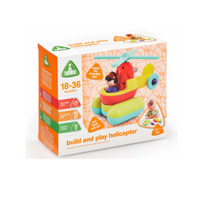 Find all the pieces and build your very own vehicle with the Build & Play Helicopter from Early Learning Centre .Press the pieces together and build your own helicopter. Pop in the pilot and lock the parts together. Let’s pretend to start up the propeller as we press the button, then simply bull back the helicopter and watch it go as we pretend it is taking off. Where shall we go on an adventure?This simple to build helicopter is great for encouraging imaginative play whilst also developing fine motor skills and helping with problem solving.Product Features: