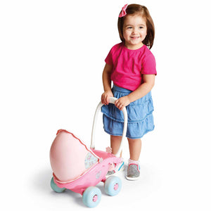 Your little one can enjoy lots of pretend play fun with the Cupcake My First Pram from Early Learning Centre.We can take our favourite dolly out for a stroll in this lovely pram. Wrap your dolly up in the soft blanket and tuck them in. Adjust the hood by flipping it over so your little dolly can see outside. Is your dolly getting tired? Time to sing a lullaby and head home. Sweet and functional, this sturdy Cupcake Pram includes an adjustable hood, making this either a pram or buggy. It has a pretty floral blanket and pillow and tinkling bell that makes a sweet sound when pushed around.Roleplaying with dolls helps to develop childrens imagination and social skills as they play, while caring for a dolly fosters nurturing skills.Product Features: