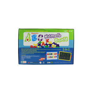 Magnetic AbcNumero Board. This set is Comprised of basic learning elements for a developing child. It contains elements such as alphabets, numbers which can be combined in many ways, providing hours of fun. Its an interactive kit specially suited for all young inclusitive minds. ages 3+