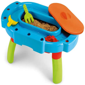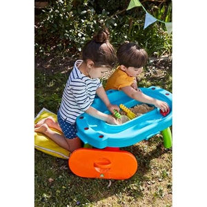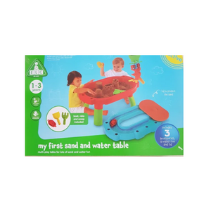 Just the right size for your little explorers and adventurers, this sturdy sand and water table can be either used on the floor or raised up on its legs. Cleverly designed with a water run around the outside of the sand pit for lots of splashing about, sculpting and pouring fun. Included is a rake, scoop and boat to play with, plus a lid to keep the pit covered between playtimes. The My First Sand and Water Table has slots around its sides for storing the accessories and can be combined with the Pour and Play Water, the Sand and Water Wheel and the Sand and Water Table (all available separately) for more watery fun. .