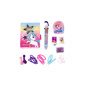 Product Includes - Unicorn diary, storage box, 4 colour clay beads, threads, Metallic charms, unicorn pen, Unicorn Slap band, Gem Stickers, Coin pouch