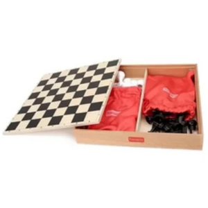 - Features wooden storage box of which the chess board is a part. You can store the play pieces in the sling bags provided in the box.