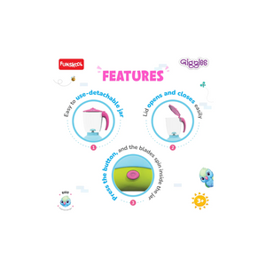 Ignite your childs culinary creativity with the Funskool Giggles Playset Happy Lil Home-Juicer, an enchanting bird-inspired role-play toy designed for kids aged 3 years and above. Encourage imaginative play as your little one explores the world of juicing with the easy-to-use pretend juicer. Press the button to set the mixer blades in motion inside the detachable jar, creating a delightful electronic sound that enhances the make-believe experience. The jars easy detachment allows for convenient play, while the lid opens and closes seamlessly for added realism. Foster a love for imaginative play and culinary adventures with this charming juicer that brings joy and entertainment to your childs playtime.