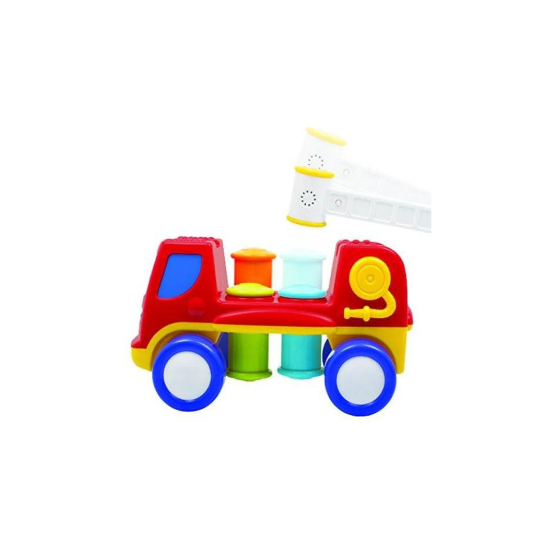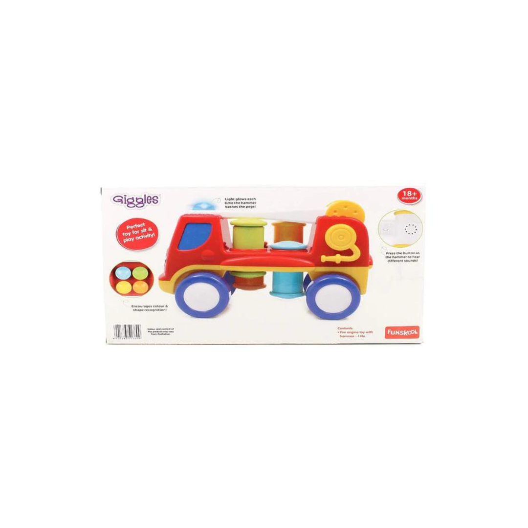 - Funskool giggles peg basher fire engine toy with interactive points that generates sound, lights and action.