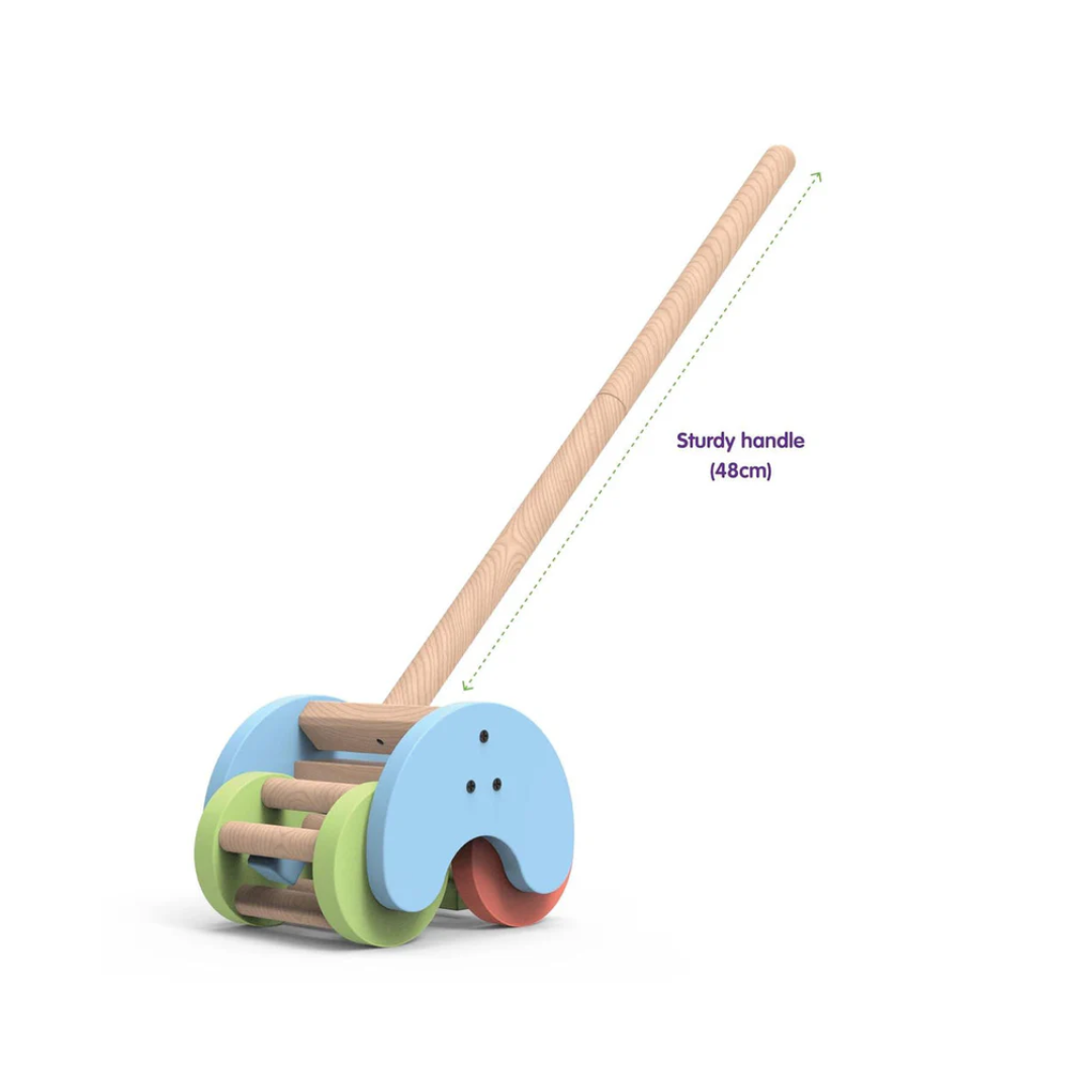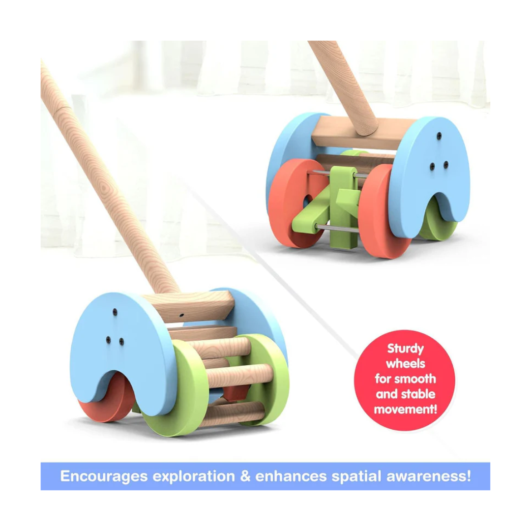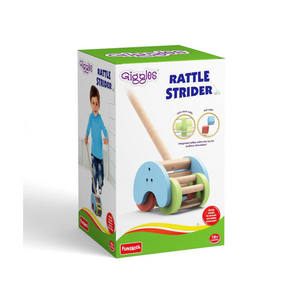 Introducing the Funskool Giggles Rattle Strider Wooden Push Along Toy, the perfect companion for toddlers aged 18 months and above! This delightful push-along toy features a vibrant design with integrated rattles, including a Click Clack Rattle and Roll Rattle, providing auditory stimulation and enhancing sensory development. Designed with smooth rounded edges, the Rattle Strider ensures your child's safety while they explore and play. The toy comes with sturdy handles and smooth, durable wheels, making it easy for little hands to grip and maneuver. Assembly is a breeze, allowing your child to start playing in no time. The Rattle Strider isn't just a toy; it's a playful kid companion that encourages motor skills development and imaginative play. Let your child embark on fun-filled adventures with the Funskool Giggles Rattle Strider Wooden Push Along Toy!