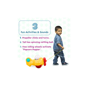 MY FIRST AEROPLANE: Roll the ball popping plane and watch your child love the action and the popping sound of the Popcorn like balls hop around.