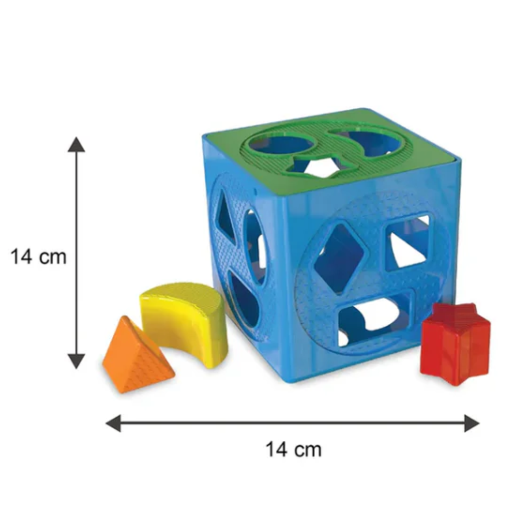 SHAPE SORTER CUBE: The Cube helps in exploring colours, shapes and textures. There are 9 shapes and helps in developing fine motor skills, hand-eye coordination and dexterity.