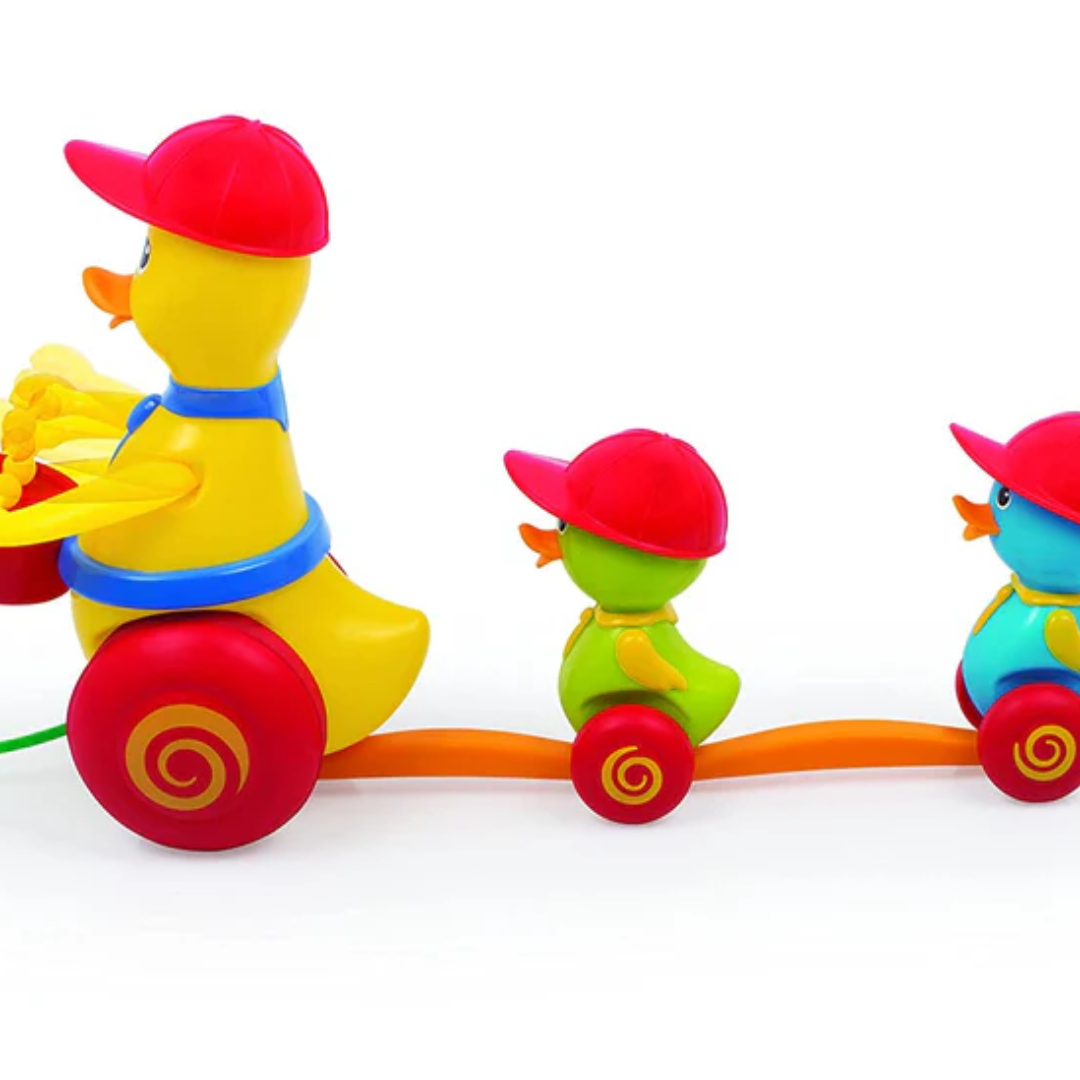 - Funskool giggles duck parade - entertaining pull-along toy headed by drum beating mother duck followed by a train of waddling ducklings