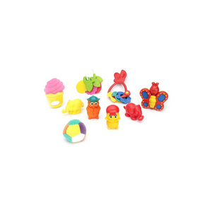 DescriptionThis Ensemble Comes With 9 Different Toys - Squeakers, Rattles, Teethers, Elephalinks And A Softball. It Has A Toy For Every Stage Of The Development Of A Baby. The Pack Contains One Butterfly Rattle, One Bunny Rattle, One Ice Cream Teether, One Fruit Teether, Two Squeaky Bunddies, Two Elephanalinks, One Mini SoftbalKey FeaturesA Gift Set Of Rattles, Teethers And Other Toys.