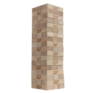 - WOODEN BLOCKS: The Classic Jenga game includes 54 precision crafted hardwood blocks. The easy-to-use stacking sleeve can help players build the tower