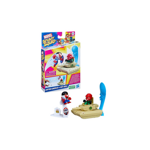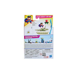 Mighty heroes, mega attitude! Marvel Stunt Squad Captain America vs. Red Skull Playset is a gamified action figures set that kids will love. With favorite Marvel characters in a classic hero versus villain play pattern, these small scale super hero figures are full of dynamic poses and action-packed fun! Marvel Stunt Squad Hero vs. Villain Playsets include two 1-inch-scale figures, a launcher, and a target base.