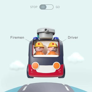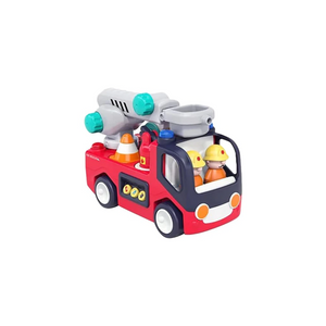 - The toy has firefighting equipment like a fire extinguisher, warning cone, fire hydrate, and fire hose