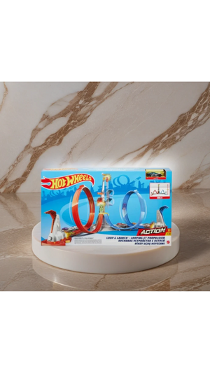 - Its a race to the winners cage in the Hot Wheels Loop & Launch Track Set! Cars race along the tracks, and through a loop that propels cars to a cage that can reach up to 2 feet in the air!