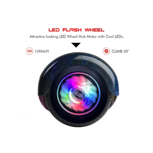 6.5-inch Tyres for Smooth Rides: Equipped with durable 6.5-inch tyres, this hoverboard ensures stability and smooth maneuverability on various terrains, providing a comfortable and enjoyable riding experience.