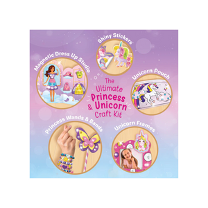 - WHAT YOU GET: This Princess DIY Kit includes - 1 Magnetic Set up, 12 Magnetic Cutouts, 500+ Shiny & Sparkly Stickers, 350 Foam Beads, 10 Acrylic Charms, 1 Bracelet Maker with Clasps, 1 Fabric Pouch, 4 Acrylic Markers, 200+ Sparkling Stones, 3 Wooden Photo Frame, Foam Base & Stickers, 15+ Butterfly Cutouts and 4 Straws, 8 Unicorn Stickers.