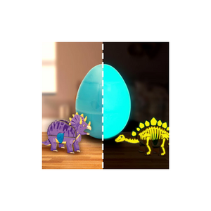 - TRIPLE DINO EXCITEMENT: Experience the thrill of assembling three sets of iconic dinosaurs, including T-Rex & Pteranodon, Stegosaurus & Triceratops, and Brachiosaurus & Velociraptor.;GLOW IN THE DARK FUN: Glow in the dark egg and dinosaur adds to the magical experience of this toy. Along with the Entire Egg, the dinosaur skeleton also glows up in the dark, giving a fossiled look to the Dinosaur 3D Models. The puzzle mat includes glowing elements as well for an added layer of excitement.
