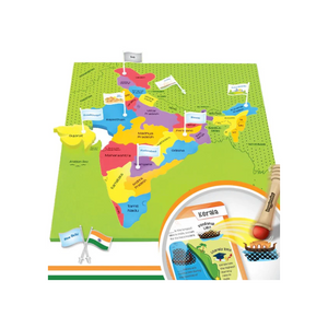 - HOW TO PLAY - Immerse yourself in the India's geography by solving the puzzle and enhancing your state capital knowledge as you place stickers on plastic flags, inserting them into the State pieces. Engage in interactive gameplay by drawing cards from the deck, exploring state knowledge and facts, and competing with fellow players.