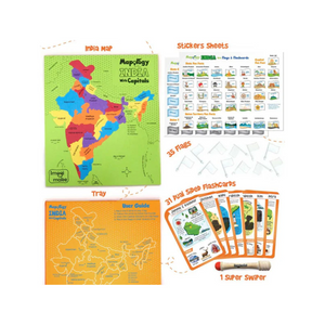 - EXPERIENCE THE ULTIMATE INDIA STATES DISCOVERY - Learn about the States of India, their Capitals, and intriguing Fun Facts, while immersing in interactive quizzes, revealing hidden facts with SWIPE & REVEAL, and uncovering magic patches. This india map puzzle and card game for kids takes you on an unforgettable journey into Indian history, geography, and culture, ultimately mastering 200+ facts along the way.
