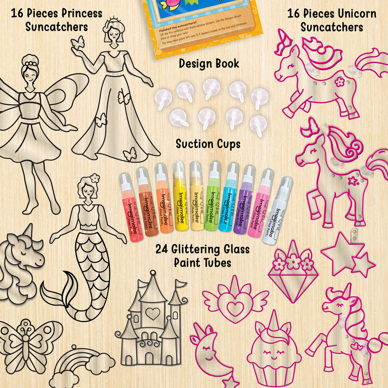 - DESIGN YOUR OWN GLITTERING SUNCATCHERS: This toys for kids comes with 24 Glass Paints Tubes which includes 7 Glitter Paint which sets up a perfect tone when it fills up the suncatchers designs of a unicorn & princess that makes it an ideal DIY kit. The set also includes 8 mini suncatchers