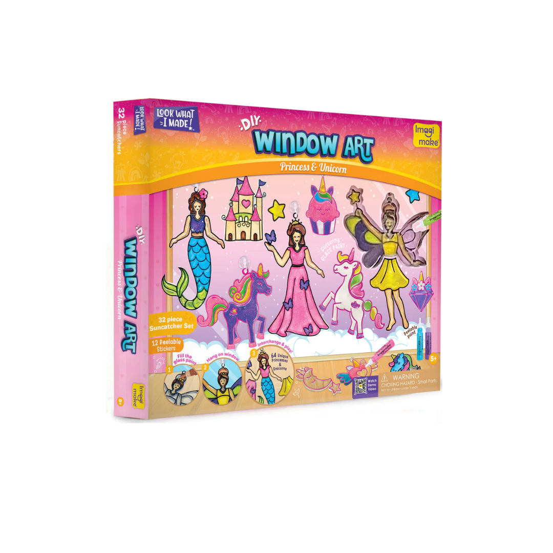 - INTERCHANGE & PLAY WITH 128 UNIQUE UNICORNS & PRINCESSES: 32 pieces suncatchers set in this art and craft kit for girls 9-12 are specially designed in such a way that the kids can interchange different parts of the unicorns & princesses & create upto128 unique combinations. This box includes 12 pieces for 3 unicorns & 3 Princesses each, 8 Suncatchers, 24 Glass Paint Tubes,14 Suction Cups, 1 Design Book & Acetate Sheet