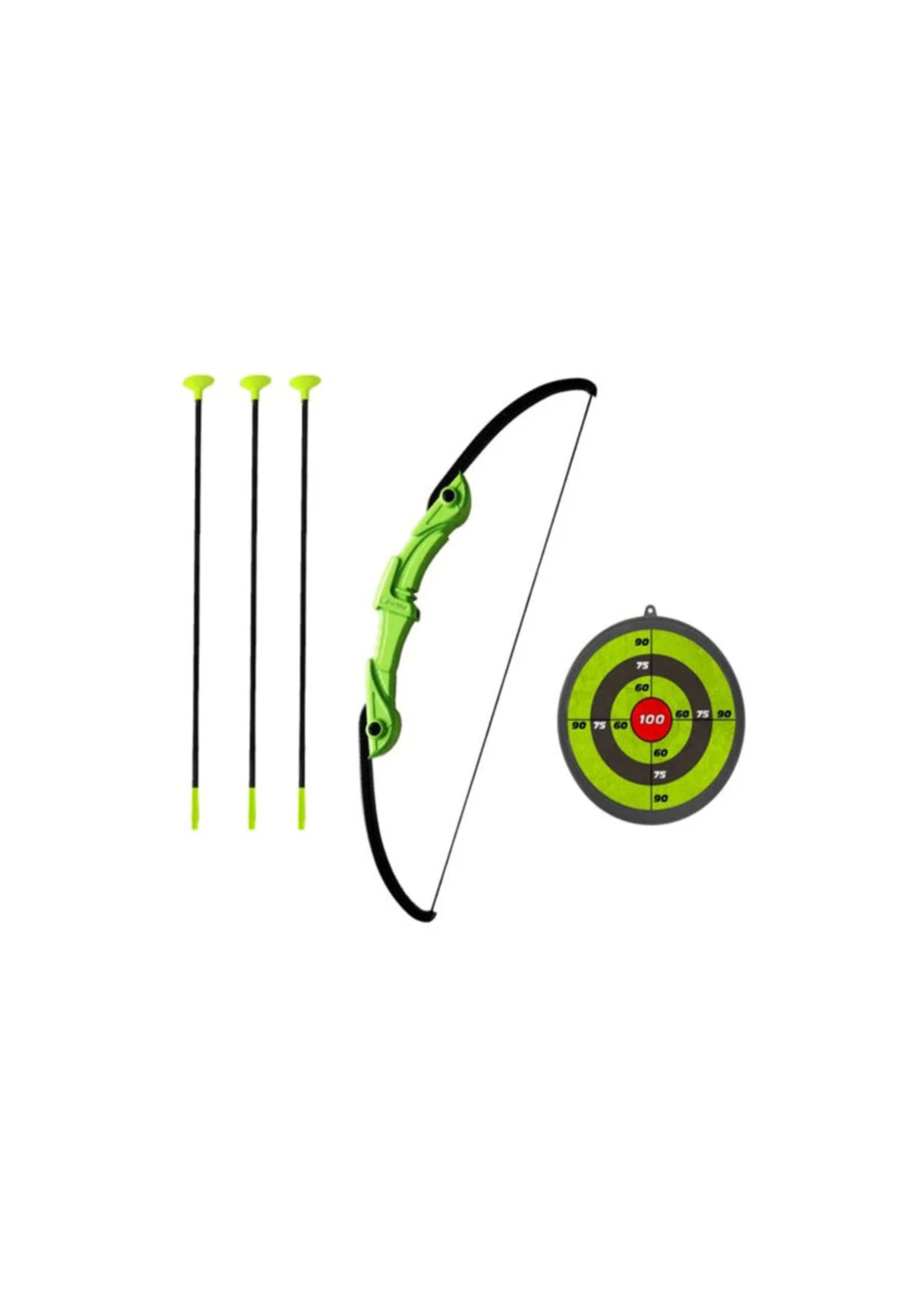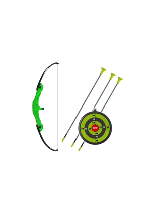- COMPLETE SET: Includes a green bow with built-in stability chambers, multiple arrows with suction cup tips, and a sturdy target board for immediate play