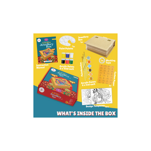 - SUFFICIENT CONTENTS: The box contains all the required material to make one Kerala Mural Jewellery box. From templates for tracing the design to tools required in making this intricate art form; this art kit is all you need to make your stunning Kerala Mural art.