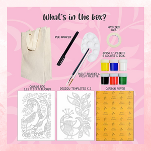 - SUFFICIENT CONTENTS - The box contains all the required material to make one Kalamkari Bag. From templates for tracing the design to tools required in making this intricate art form; this art kit is all you need to make your stunning Kalamkari art.