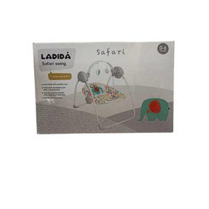 Ladida Baby Swing-6 Classic Melodies-5 Swing Speed Modes-5 Point Harness-Removable & Adjustable Toy Bar-3 Months Warranty-Upto 9 Kg-Safari