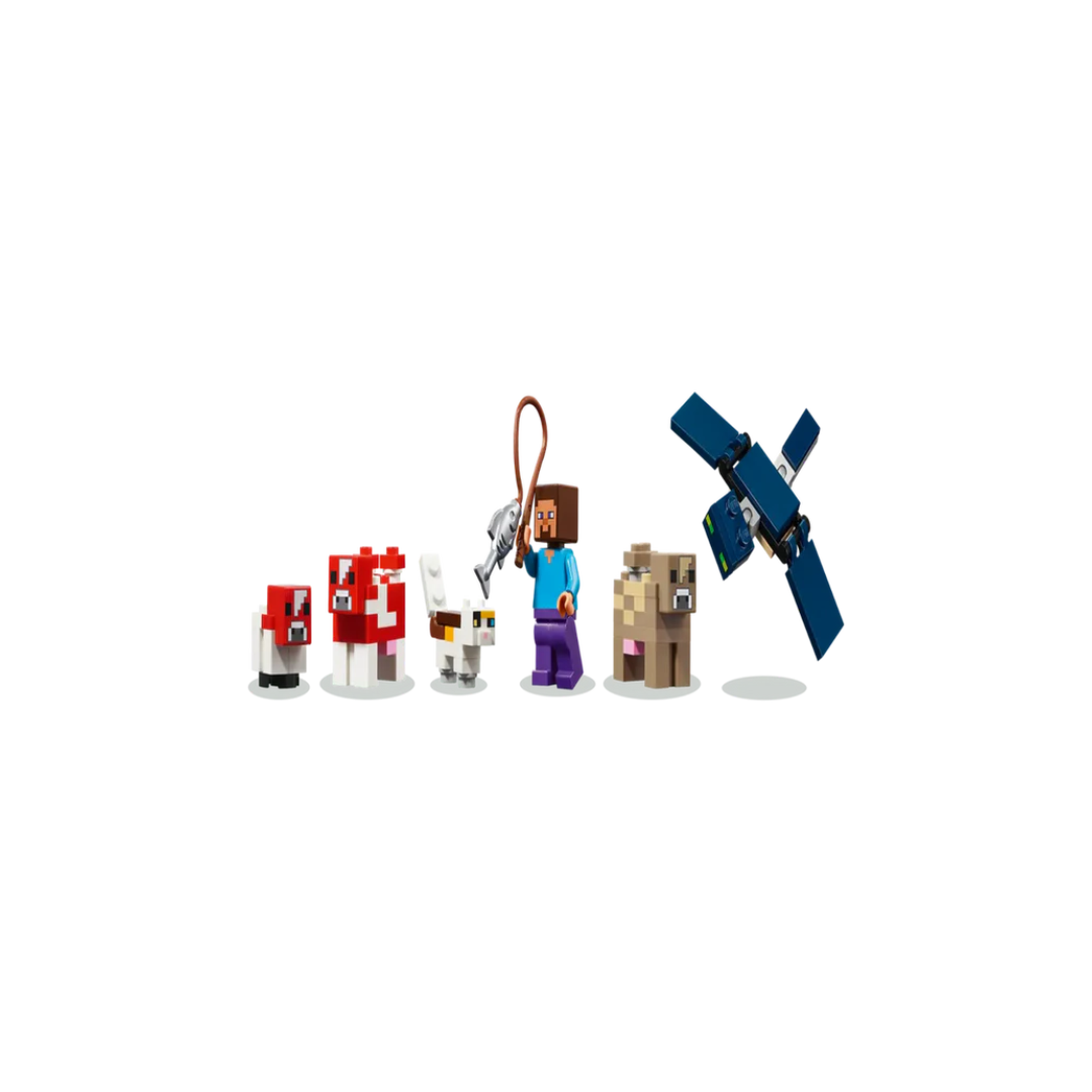 Hands-on video game toy – Kids build a large, mooshroom-shaped house with a small farm on an island, go fishing in a boat and search for treasure