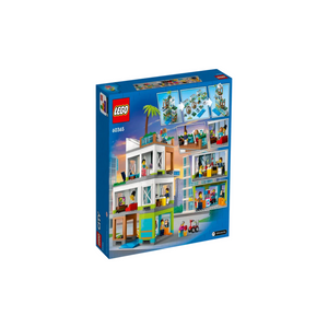 This premium-quality 6+ LEGO® City Apartment Building (60365) features combinable room modules with lots of interior details for imaginative play, including a convenience store, living room, kitchen, bedroom and a bathroom complete with toilet and bathtub. The set also includes a toy mobility scooter, bike, 6 minifigures and a LEGO Road Plate for connection to other sets from the LEGO City range.