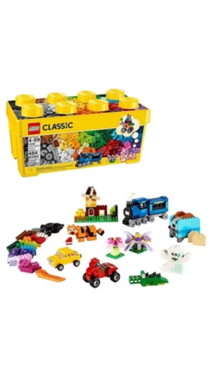 Designed with builders of all ages in mind, this collection of LEGO bricks in 35 different colors will encourage open-ended building play, and inspire any imagination. Windows, eyes, and lots and lots of wheels add to the fun and offer endless possibilities for creative construction and vehicle play. A great supplement set to any existing LEGO collection, this set comes in a convenient plastic storage box and includes ideas to get the building started.