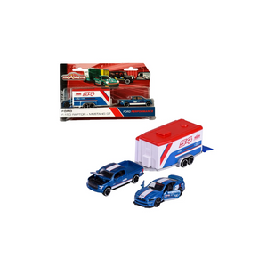 Majorette Race Trailer Ford F-150 Raptor + Mustang GT Diecast Model