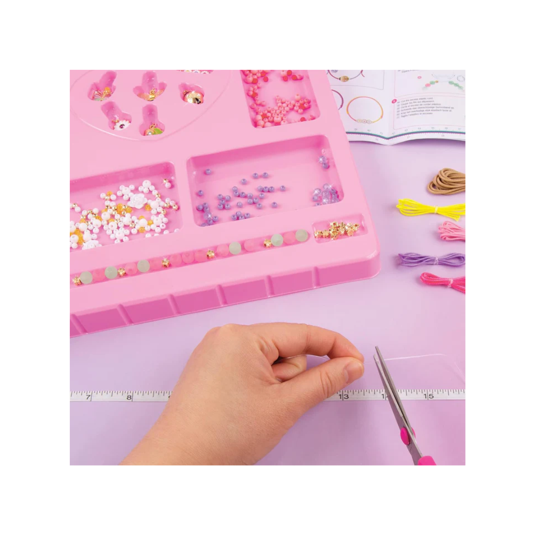 - KEEP IT ORGANIZED: A sturdy organizing tray makes it easy to store tiny pieces after craft time ends. HELPS KIDS DEVELOP REAL WORLD SKILLS: Learning to design and make their own jewelry will help young kids develop fine-motor, visual and tactile-sensory skills, all while having fun and expressing themselves!