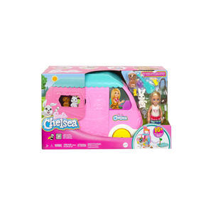 Mattel Barbie Chelsea 2-in-1 Camper Playset With Chelsea Small Doll, 2 Pets and Accessories