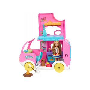 Mattel Barbie Chelsea 2-in-1 Camper Playset With Chelsea Small Doll, 2 Pets and Accessories – A World of Adventure in One Compact Set