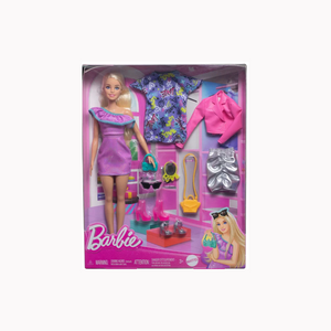 - Style 3 complete looks with this Barbie doll and her fashions! The set includes colorful clothing and trendy accessories for tons of dress-up possibilities