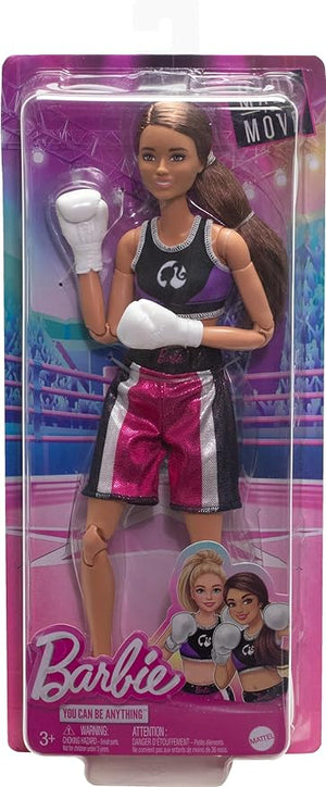 Mattel Barbie Made to Move Doll & Accessories, Brunette Boxer Wearing Removable Uniform with Boxing Gloves, 22 Bendable Joints