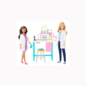 Kids can discover and explore science careers with this STEM lab playset featuring two Barbie® scientist dolls and their chemistry lab! The two Barbie® dolls wear white lab coats and are ready to experiment with a lab bench station and accessories like a microscope, laptop, beakers, heart-shaped tube, masks and goggles. Kids can dream big and imagine everything they can become with Barbie® Career dolls! Doll cannot stand alone. Colors and decorations may vary.
