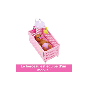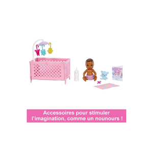Mattel Barbie Skipper Babysitters Crib Playset With Latina Friend Doll, Baby Doll with Sleepy Eyes, Furniture and Themed Accessories